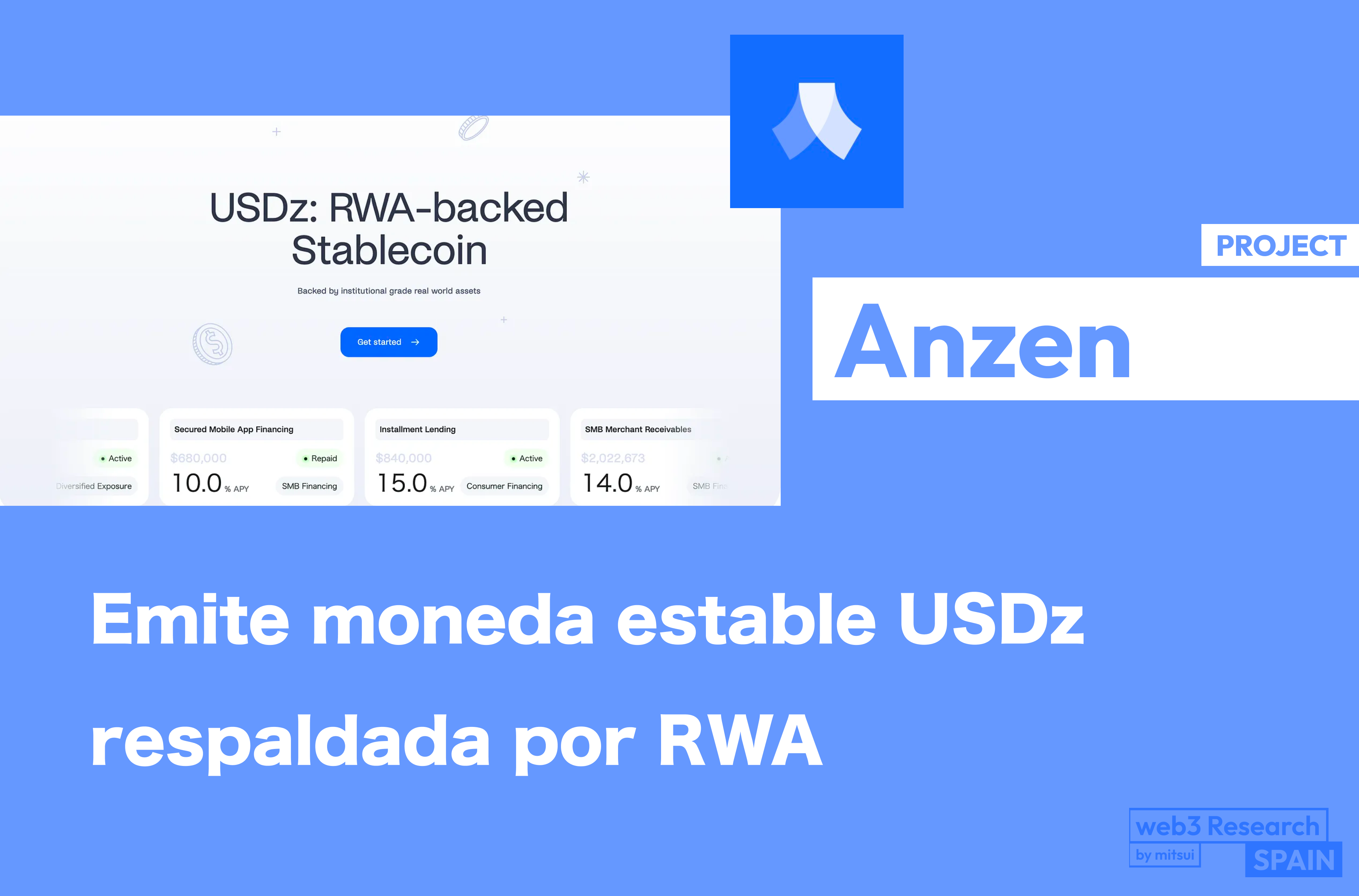 Anzen" es un protocolo DeFi que ofrece recompensas RWA sin permiso respaldadas por créditos privados a nivel de agencia. Actualmente, es ' USDz',unamoneda estacionada respaldada por RWAs. Por lo tanto, este artículo describe "USDz".