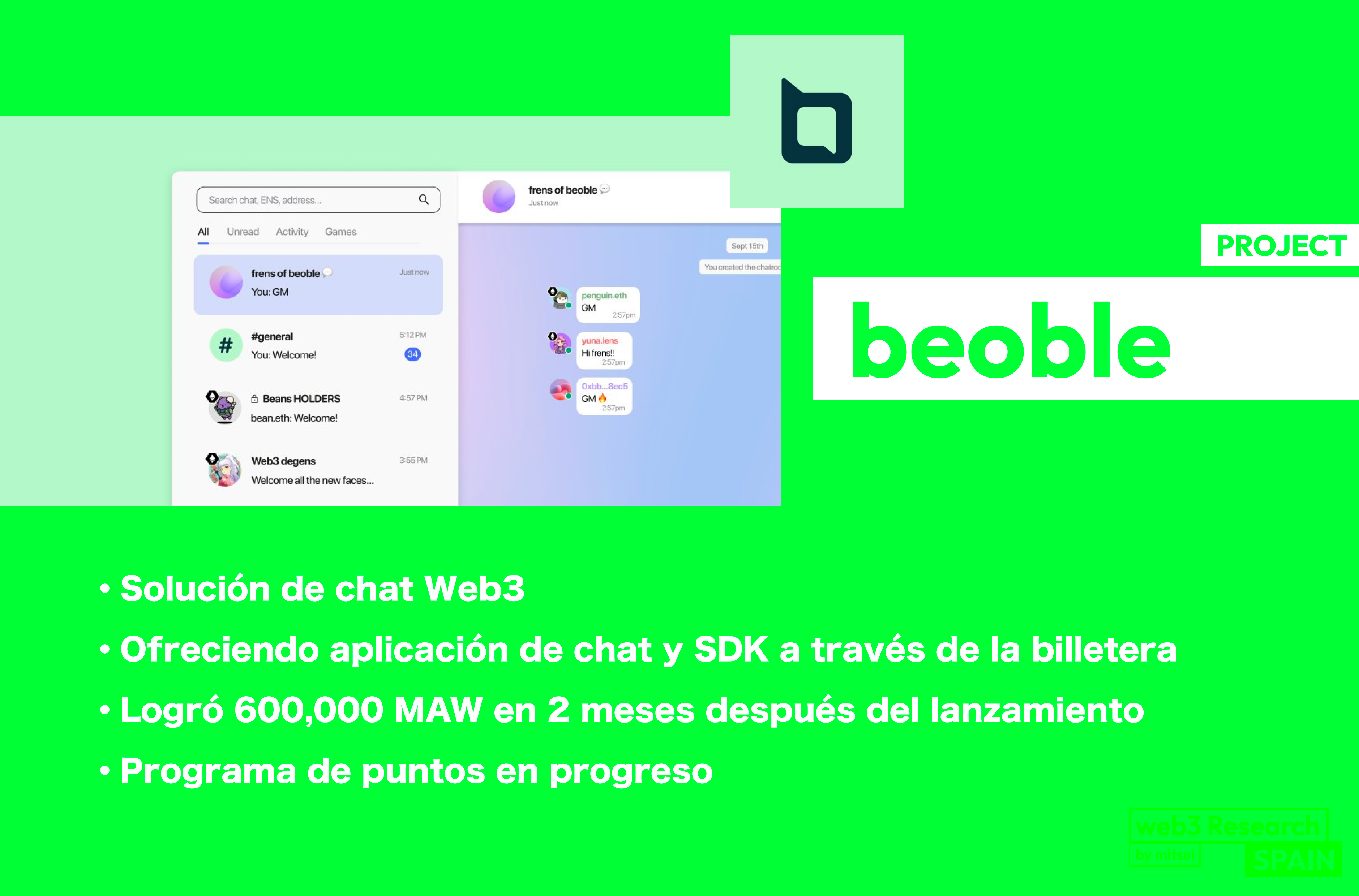 【Beoble】Solución de chat Web3 / Ofreciendo aplicación de chat y SDK a través de la billetera / Logró 600,000 MAW en 2 meses después del lanzamiento / Programa de puntos en progreso / @beoble_official