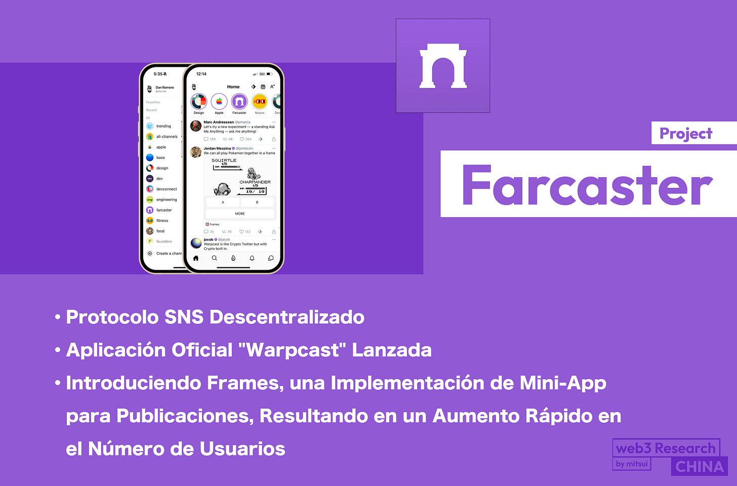 "Farcaster" es un protocolo descentralizado de SNS. Farcaster sirve para almacenar los identificadores de usuario, los casts (tweets en Farcaster), los likes y otras acciones.