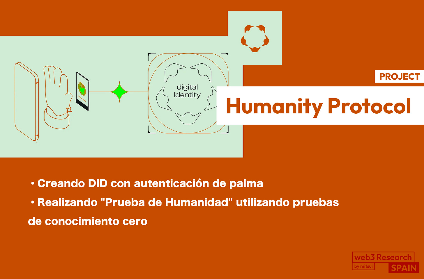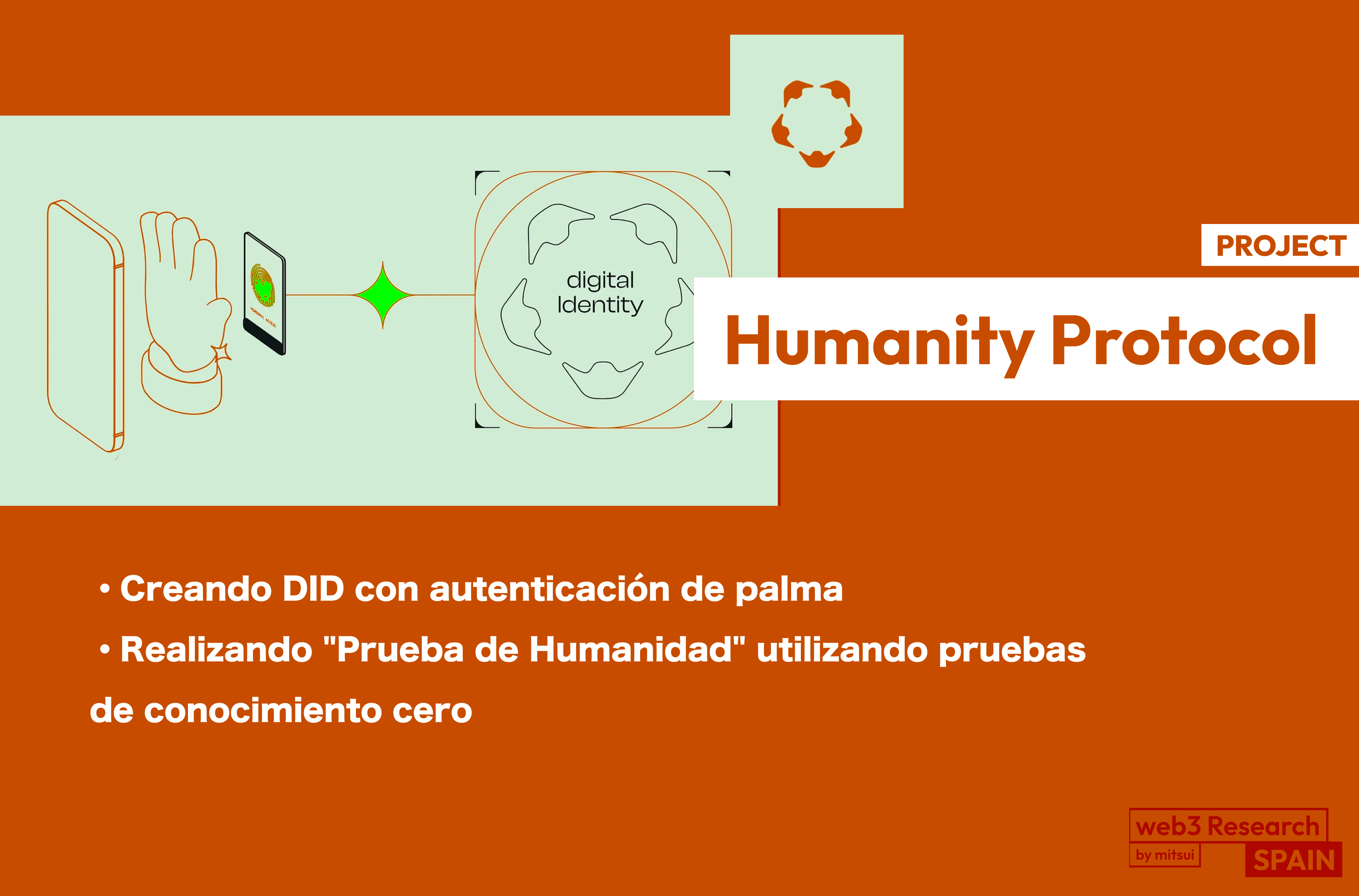 El "Protocolo de Humanidad" es un protocolo que permite el establecimiento de una Identidad Digital (DID) en la plataforma digital autenticando la palma del usuario. Es un concepto similar a Worldcoin, que usa reconocimiento de iris, pero el "Protocolo de Humanidad" autentica con la "palma" del usuario.