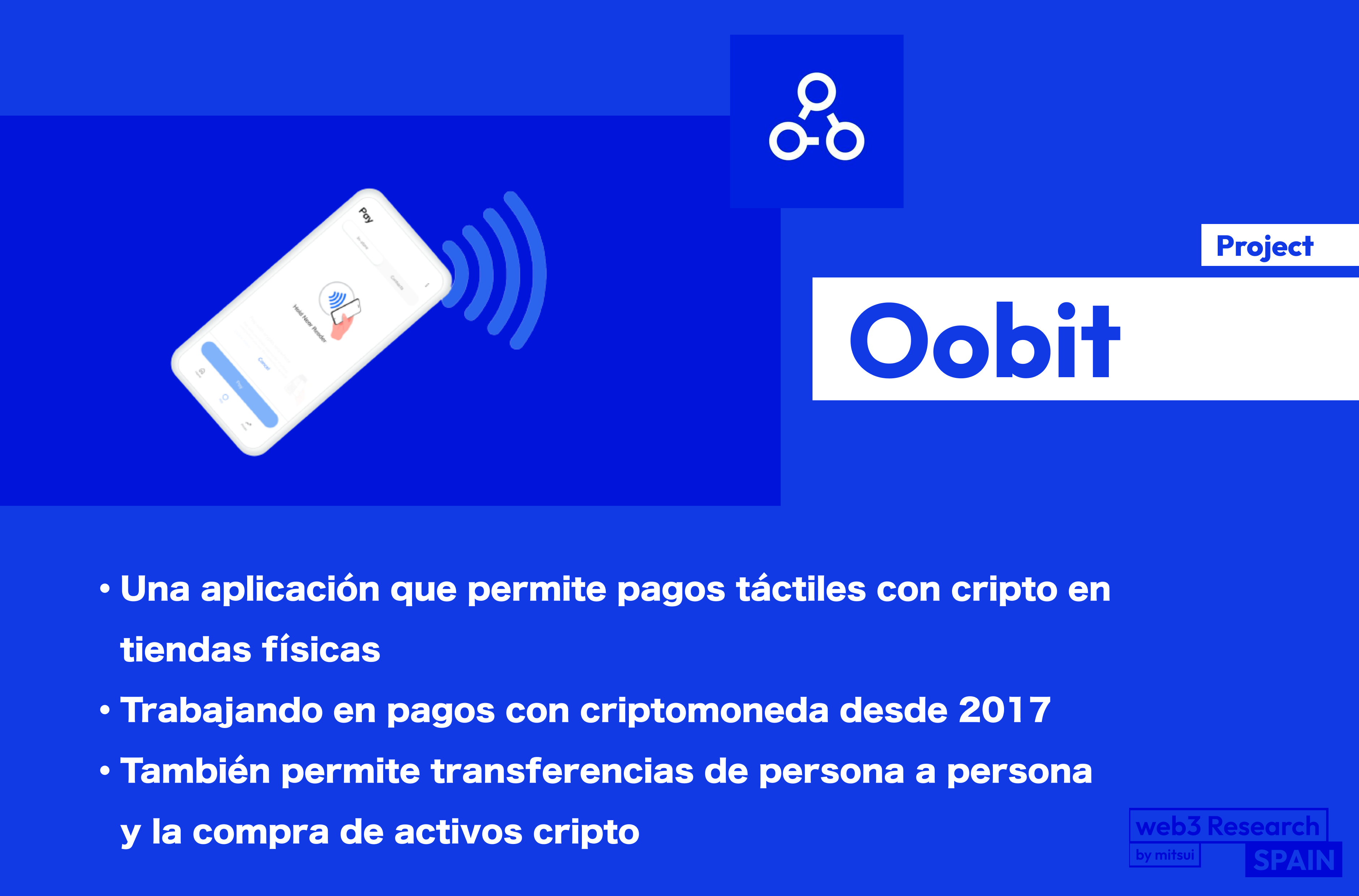 "Oobit" es una aplicación que permite realizar pagos con criptomonedas en tiendas de todo el mundo. Permite a los usuarios mantener criptomonedas como Bitcoin y Ethereum dentro de la aplicación y utilizar pagos táctiles en tiendas físicas para transacciones con criptomonedas.
