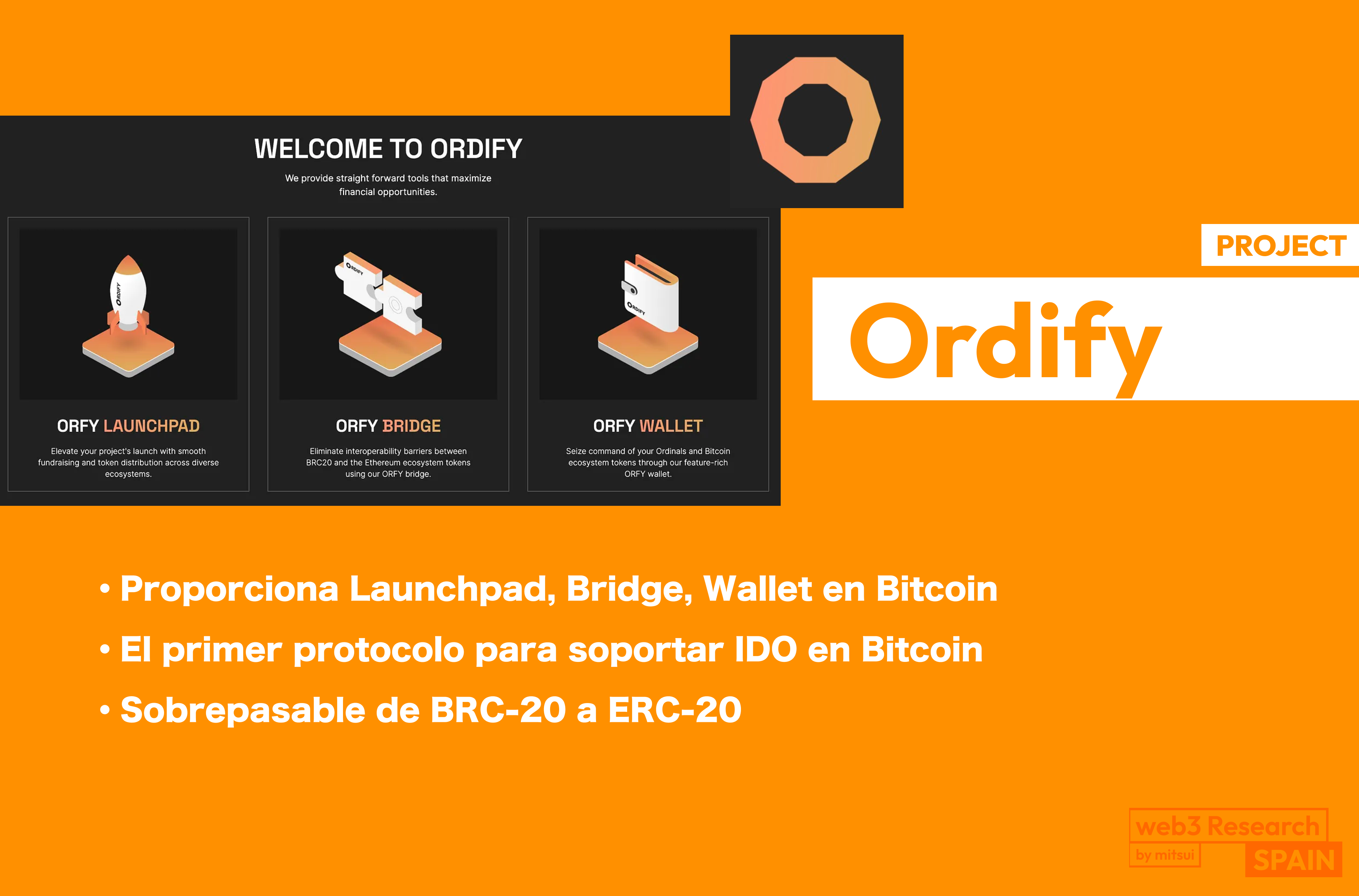 "Ordify" proporciona una serie de productos diseñados para mejorar la experiencia de inversión en múltiples redes blockchain. Su objetivo principal es promover el crecimiento del ecosistema de Bitcoin, y actualmente ofrece Launchpad, Bridge, Wallet como sus tres servicios.